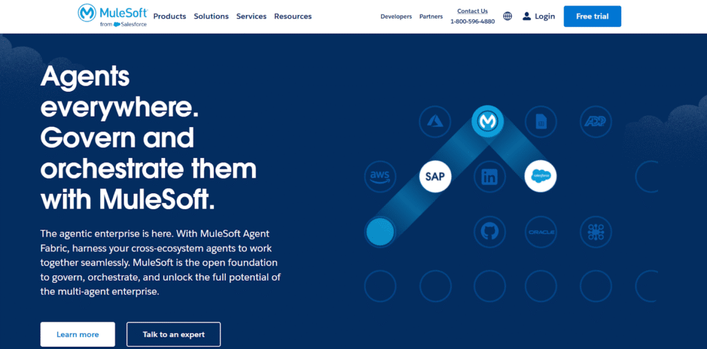 MuleSoft’s Anypoint Platform enables enterprises to integrate applications, data, and devices seamlessly. Their API-led connectivity approach allows businesses to accelerate digital transformation through reusable APIs, enhancing scalability and connectivity.