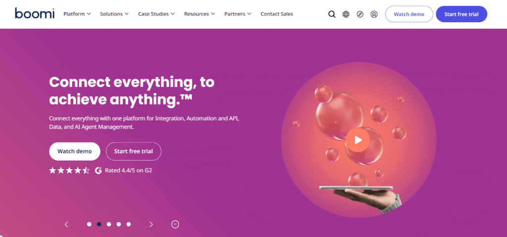 Boomi offers the AtomSphere platform, an integration platform as a service (iPaaS) that connects applications, data, and processes across various environments. The platform provides capabilities for application integration, data management, and workflow automation. Its low-code interface allows both technical and non-technical users to design integrations, democratizing the process of automation.