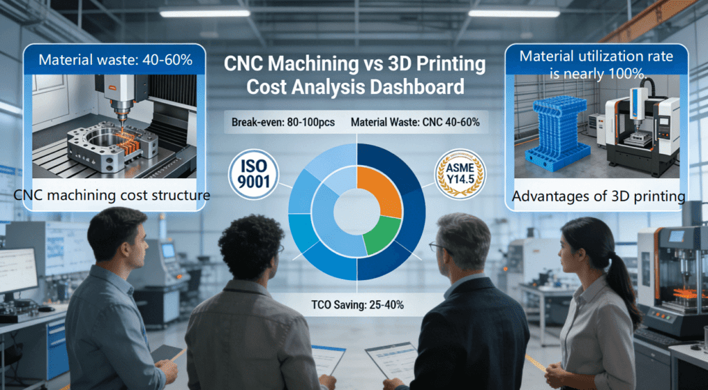 In today’s competitive manufacturing environment, many companies face critical decisions during prototype development and small-batch production: whether to choose CNC machining or 3D printing. Poor choices often lead to budget overruns, delivery delays, and compromised product performance. The root problem lies in traditional decision-making that relies too heavily on per-part cost or intuition, lacking a systematic analysis of Total Cost of Ownership (TCO) that considers key variables like production volume, geometric complexity, and delivery time.